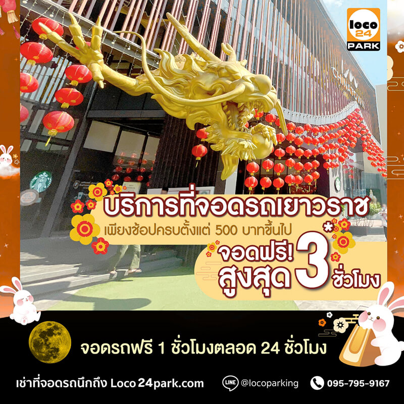 ช้อปปิ้งเยาวราช หมดห่วงเรื่องที่จอดรถ เพราะ มีที่จอดรถฟรี 1 ชั่วโมง ที่ห้าง I’m China Town และเมื่อช้อปในห้างครบ 500 บาท จอดรถฟรี 3 ชั่วโมง เดินเยาวราชกันให้เพลินไปเลย